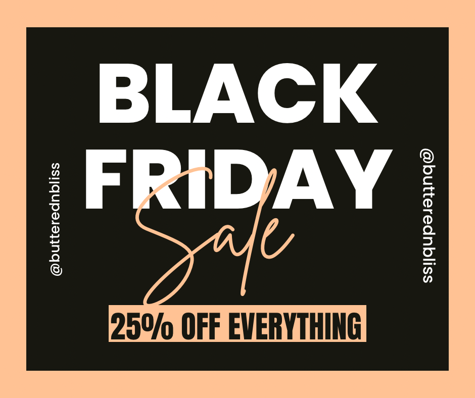 Our biggest sale of the year is here! The entire site is discounted just for you — don’t miss your chance to stock up on your Buttered N Bliss favorites!